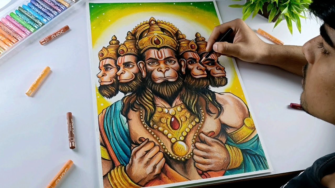 How To Draw Panchmukhi Hanuman Ji Drawing, Oil Pastels (Drawing ...