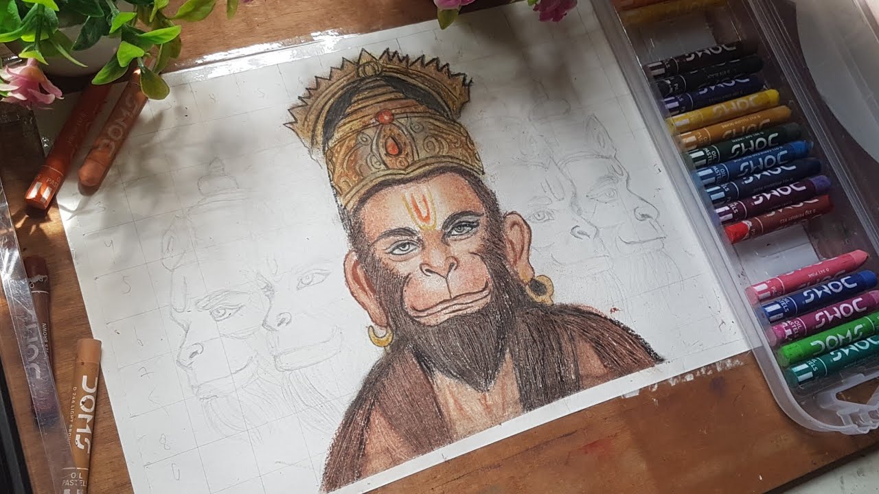 Hanuman ji Drawing, Lord Hanuman Drawing, Oil pastel Drawing - YouTube ...
