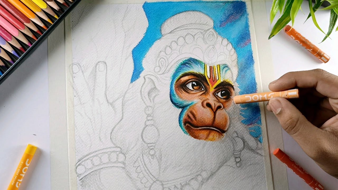 Hanuman Ji Drawing | Oil pastels drawing, Step By Step - YouTube