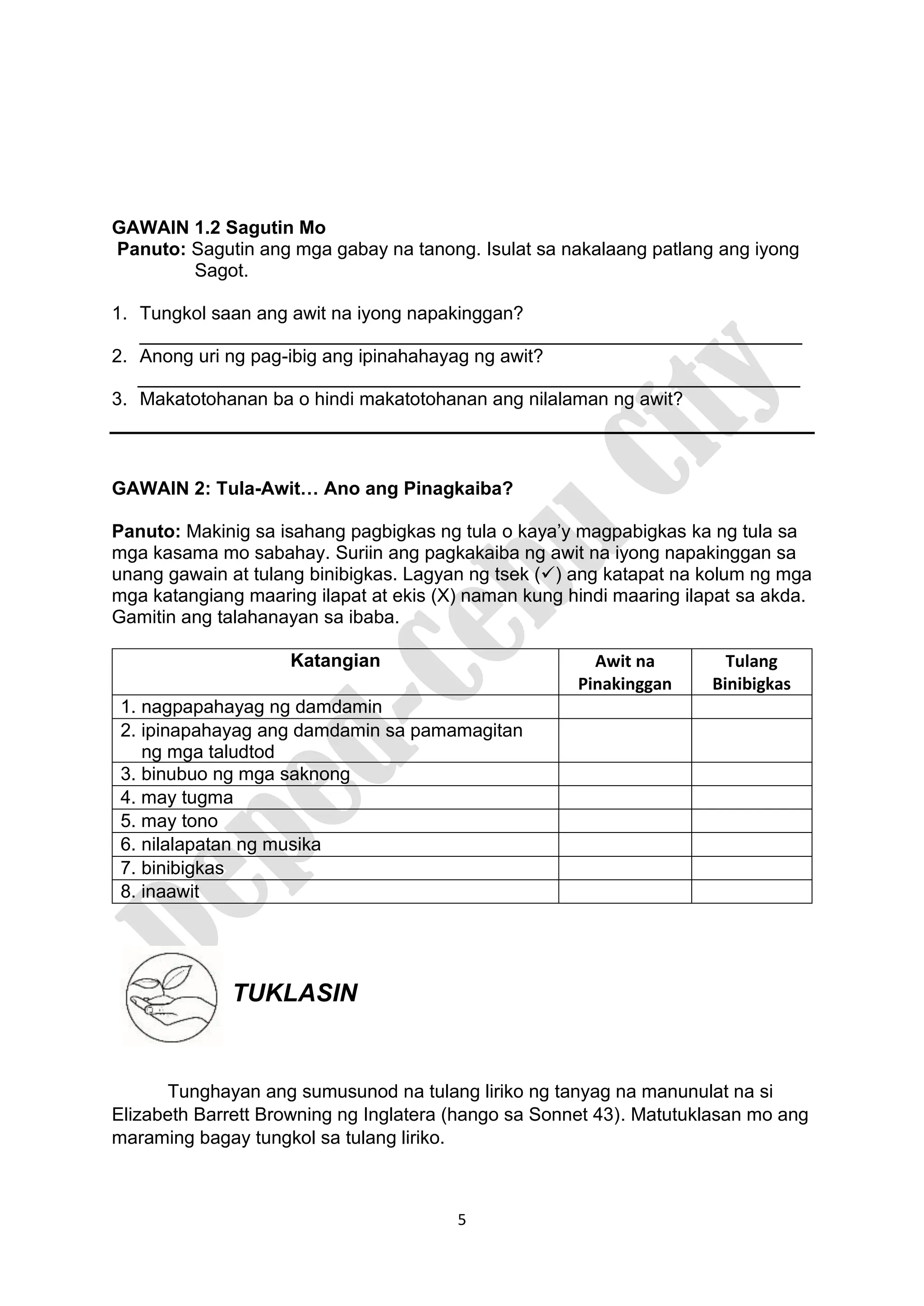 Filipino Grade 10 Quarter 2 Module 5