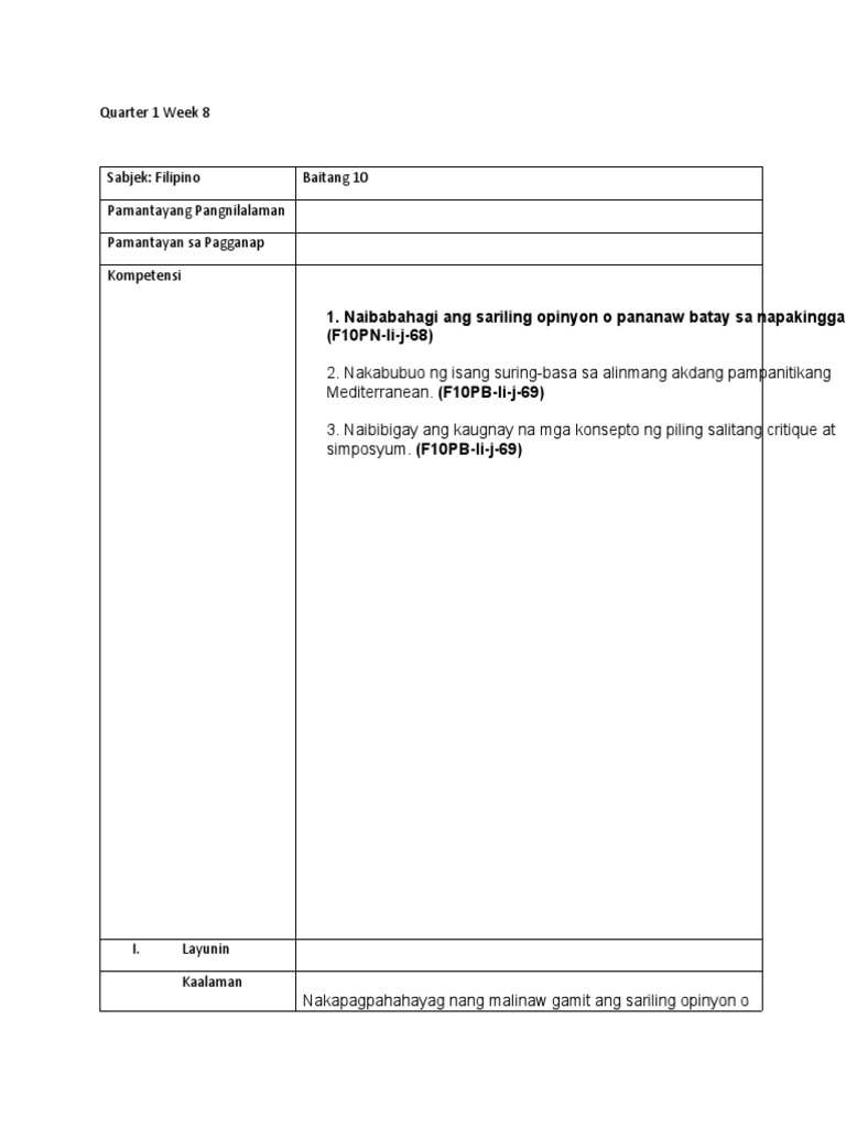 Filipino 10, Quarter 1 - Week 2 | PDF