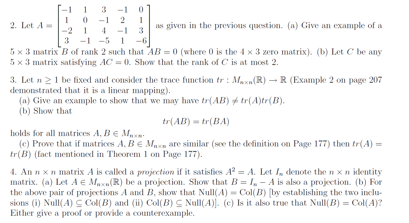 Solved Let A = as given in the previous question, (a) Give | Chegg.com