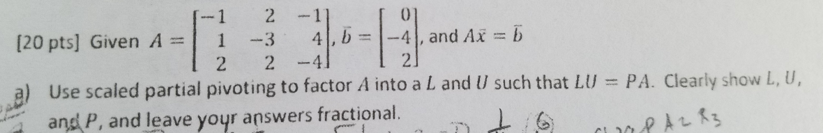 Solved Given A = [-1 2 -1 1 -3 4 2 2 -4], b = [0 -4 2], | Chegg.com