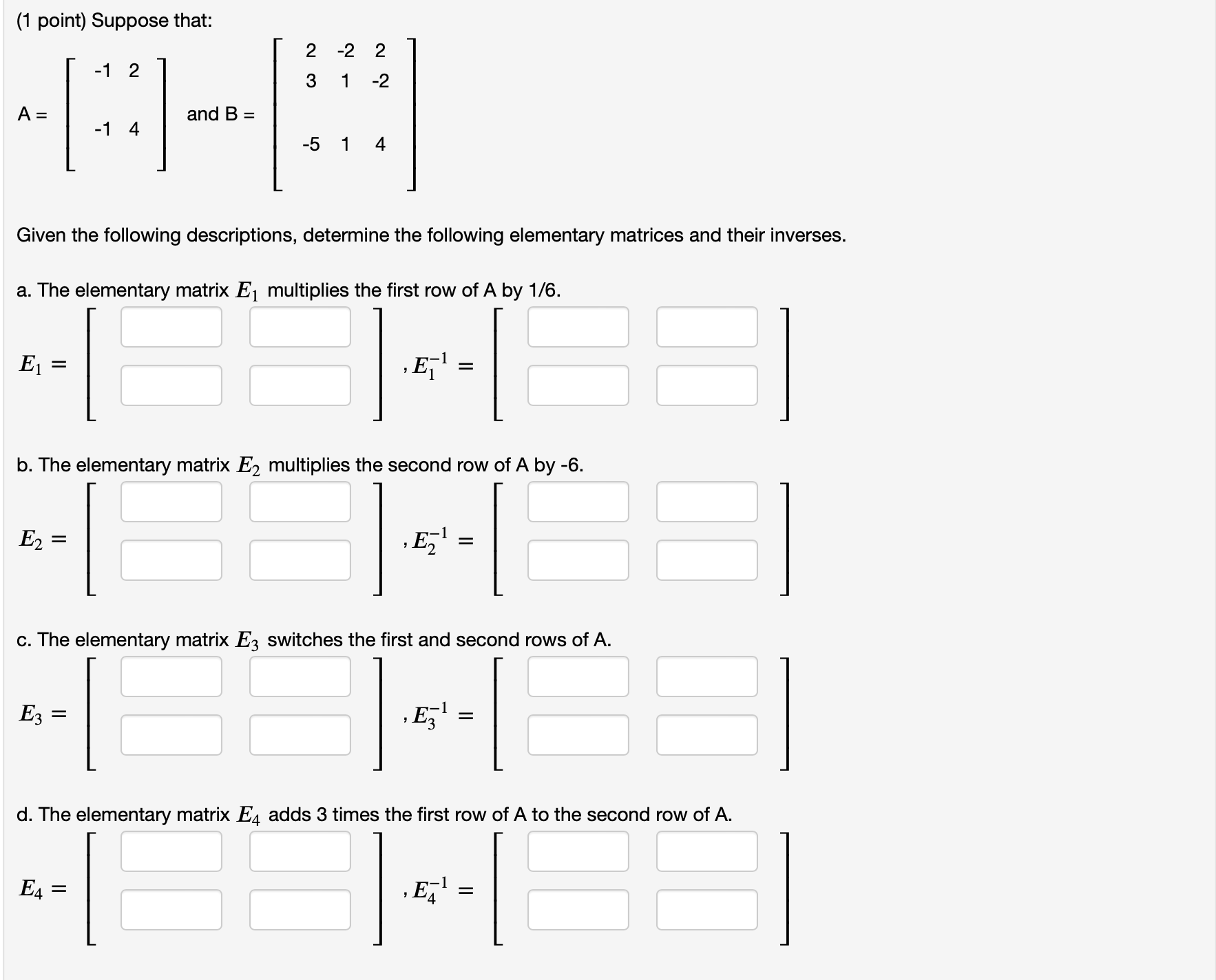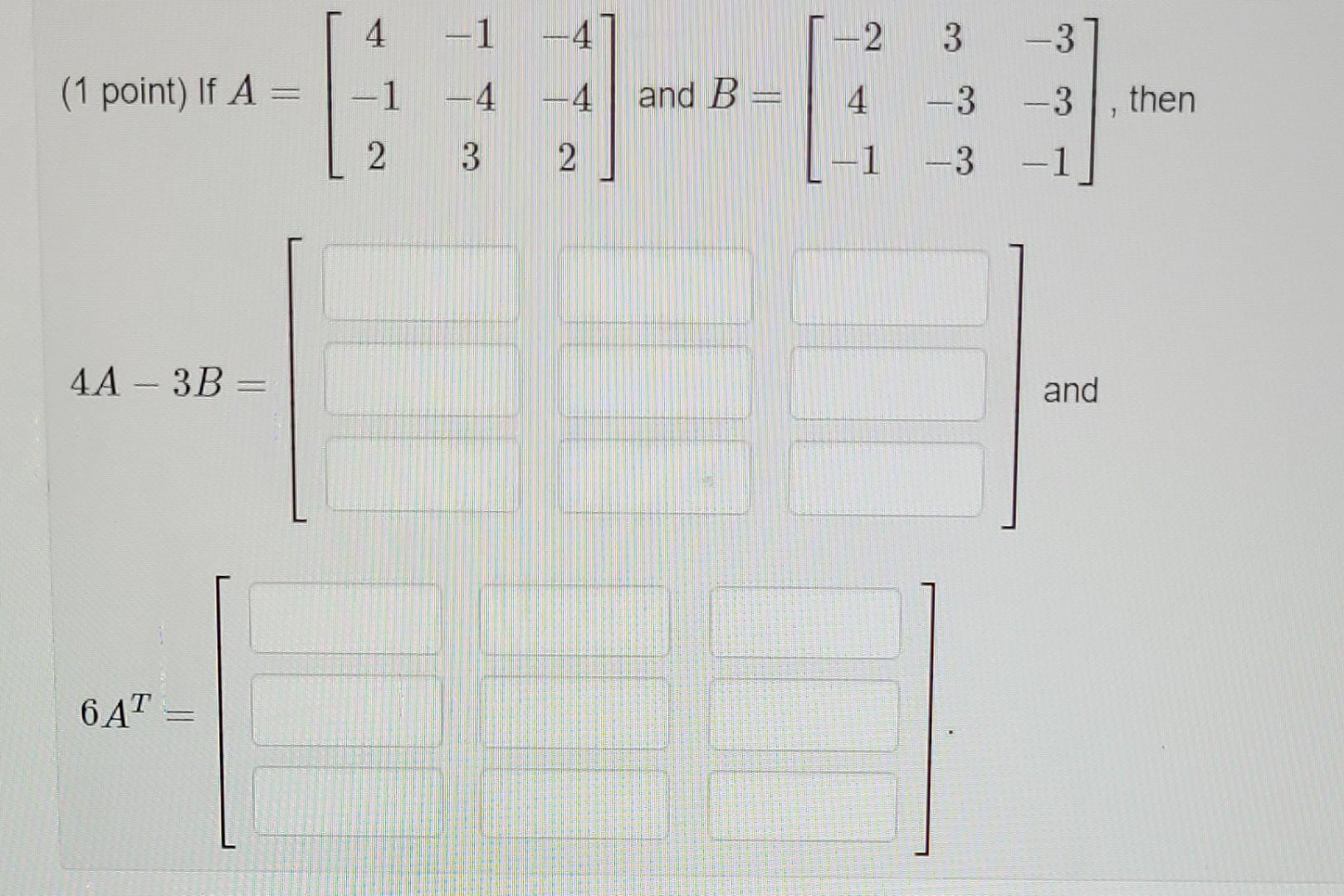 Solved (1 point) If A=⎣⎡4−12−1−43−4−42⎦⎤ and | Chegg.com