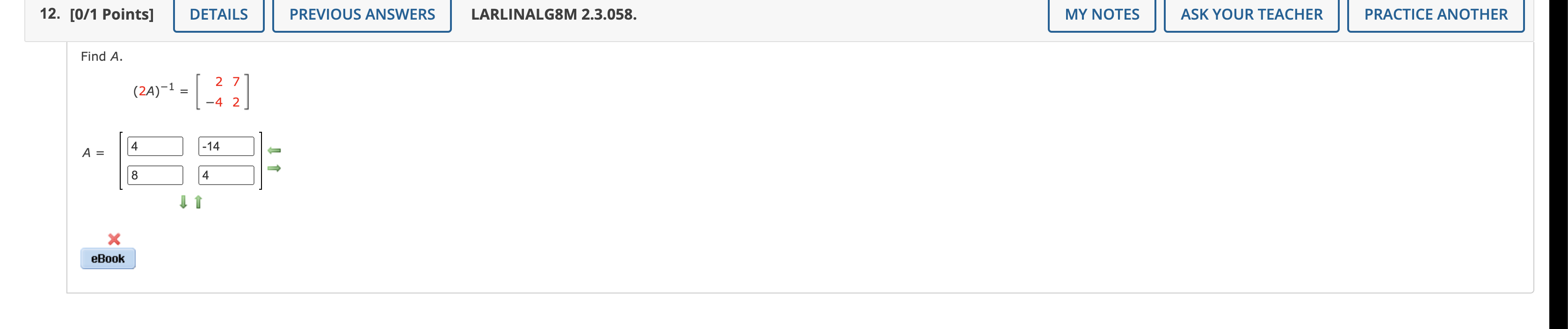 Solved 12. [0/1 Points] DETAILS PREVIOUS ANSWERS LARLINALG8M | Chegg.com