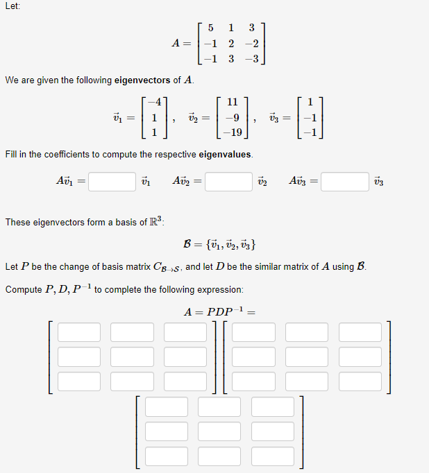 Solved A=⎣⎡5−1−11233−2−3⎦⎤ We are given the following | Chegg.com