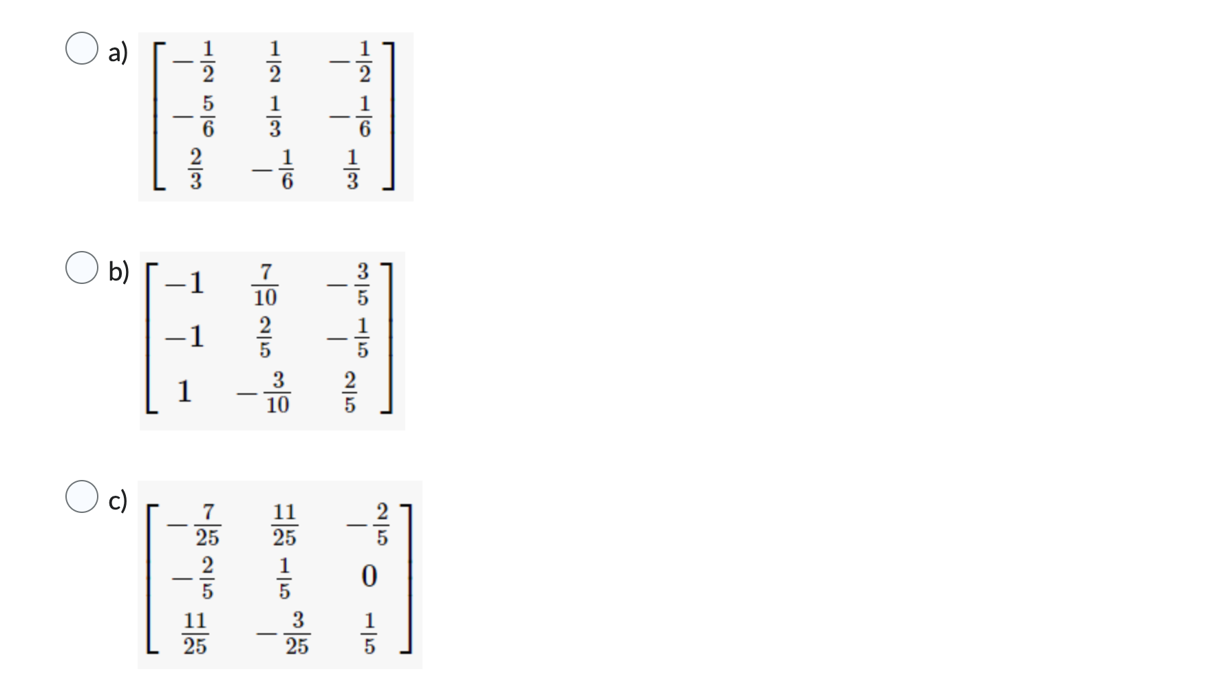 Solved Question 2 (1 point) Calculate ⎣⎡12−1−124143⎦⎤−1 Use | Chegg.com