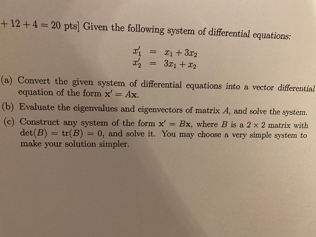 Solved +12+4= 20 pts] Given the following system of | Chegg.com
