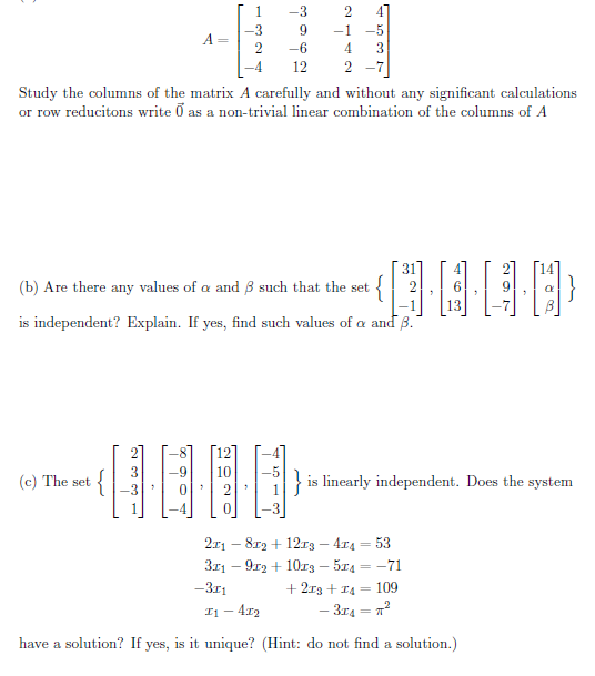 Solved A=⎣⎡1−32−4−39−6122−1424−53−7⎦⎤ Study the columns of | Chegg.com