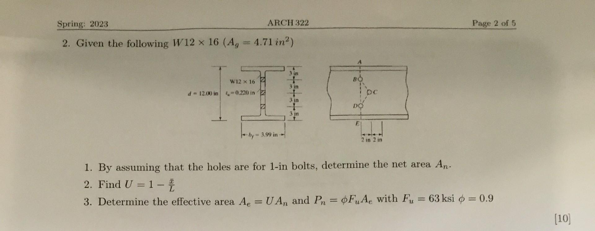 Solved 2. Given the following W12×16(Ag=4.71in2) 1. By | Chegg.com