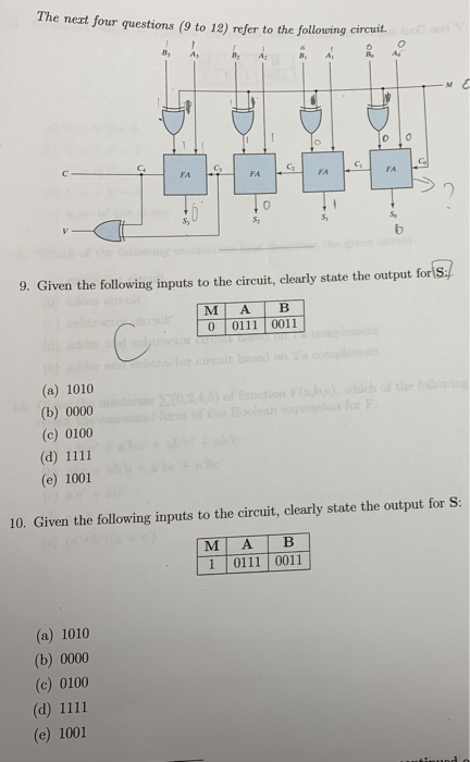 Solved The next four questions (9 to 12) refer to the | Chegg.com