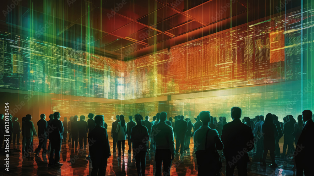 Generative AI illustration featuring a silhouette of a crowd, standing ...