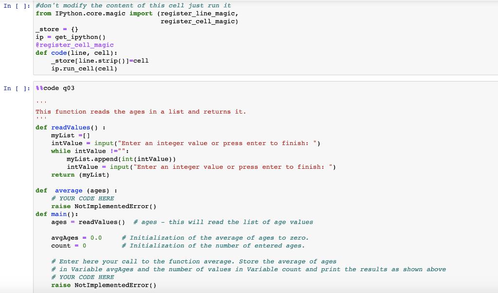 Solved Question 1c Write a function average that takes a | Chegg.com