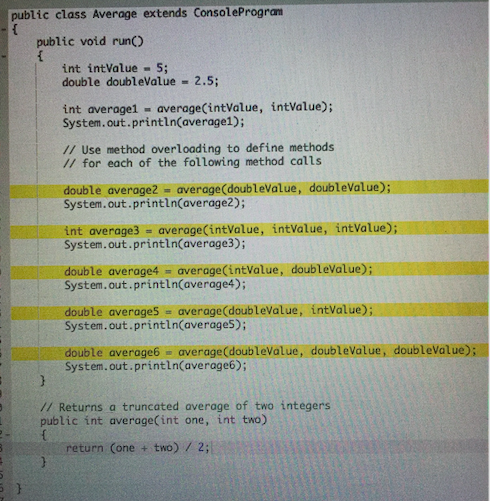 Solved Problem 1e. Write a method called average that | Chegg.com