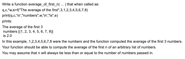 Solved Write a function average_of_first_n(...) that when | Chegg.com