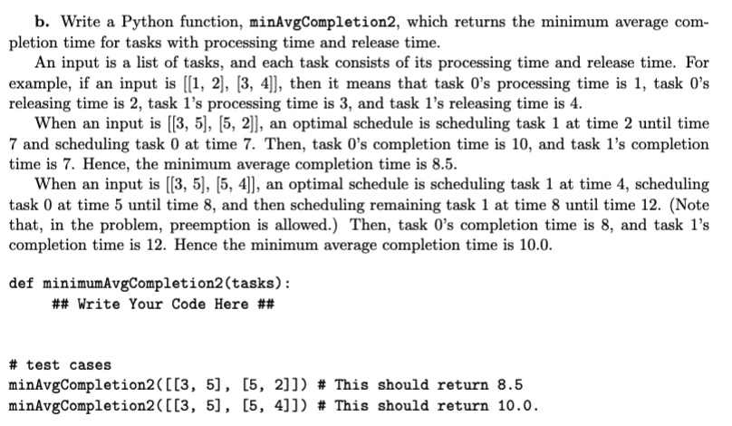 Solved b. Write a Python function, minAvgCompletion2, which | Chegg.com