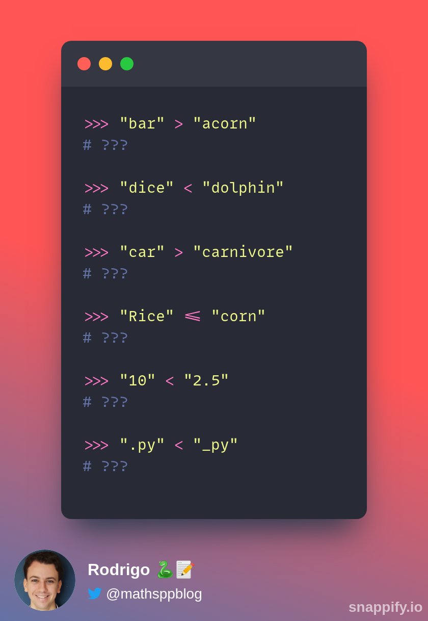 Rodrigo ๐๐ on Twitter: "How are strings ordered in Python ๐? How do the ...