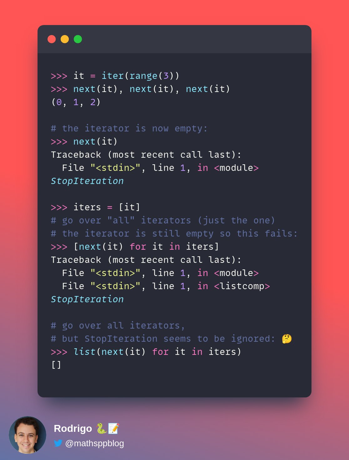 Rodrigo ๐๐ on Twitter: "This is a Python ๐ quiz about generators. What ...