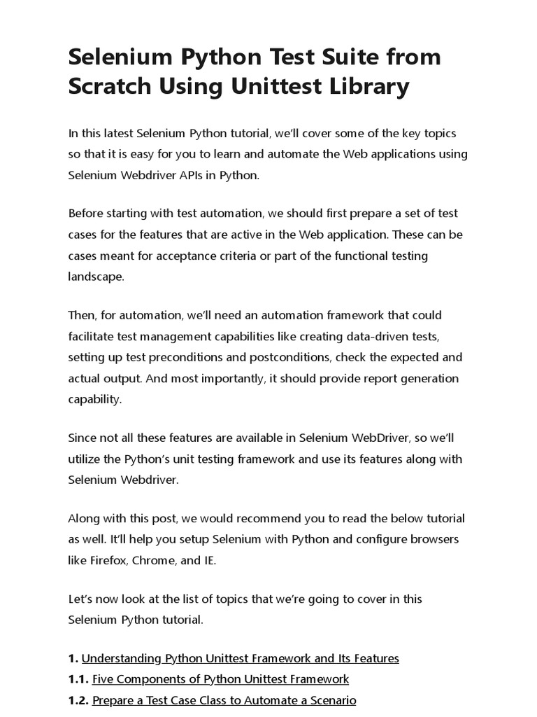 Selenium Python Test Suite From Scratch Using Unittest Library | PDF ...