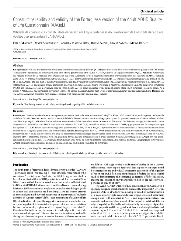 Portuguese AAQoL Semantic Validation | PDF | Attention Deficit ...
