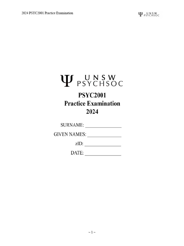 2024 PSYC2001 Exam Practice Questions | PDF | Normal Distribution ...