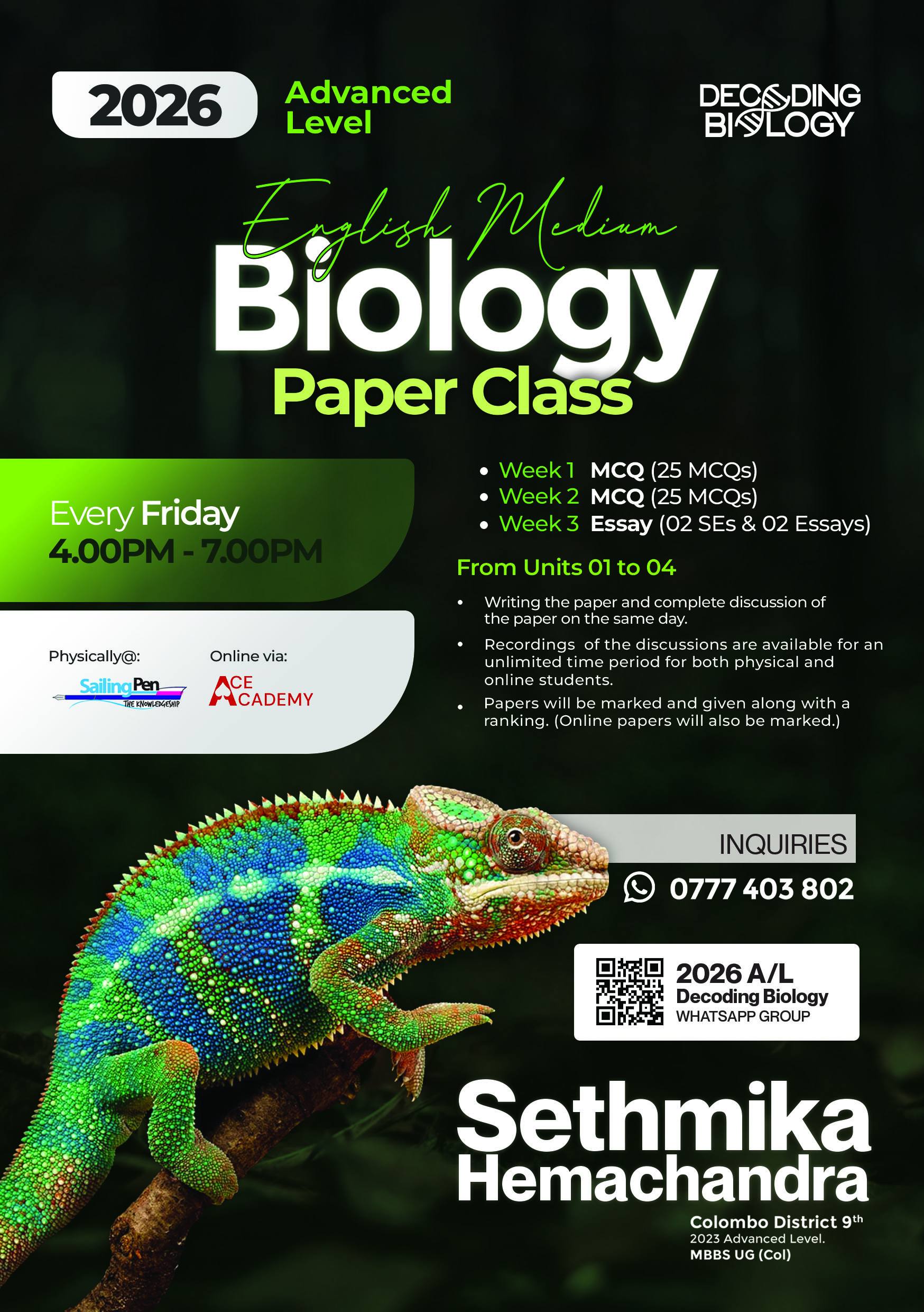 2026 A/L Biology Paper | English Medium [April] | By Sethmika ...