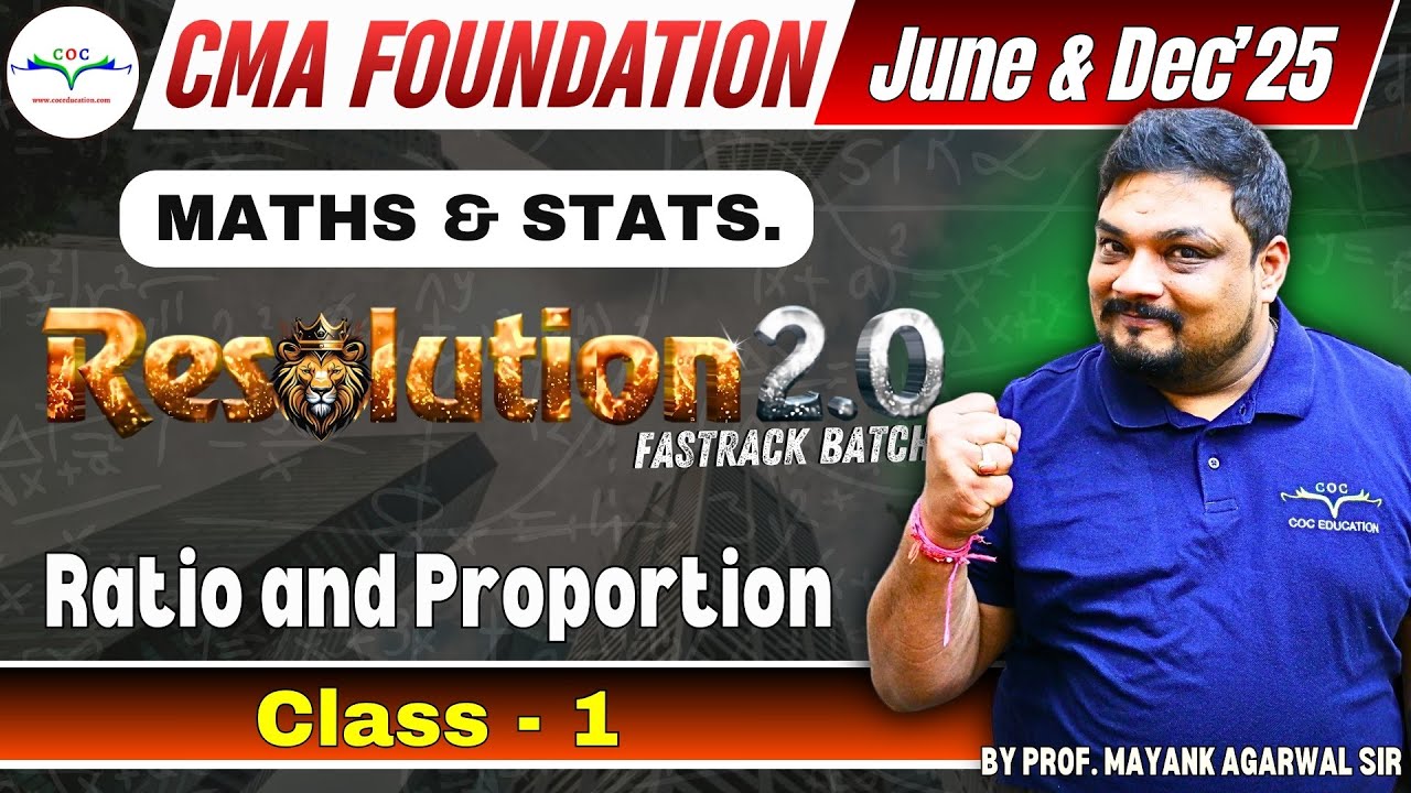 Ratio and Proportion Live Class 1 | CMA Foundation Maths & Stats. | By ...