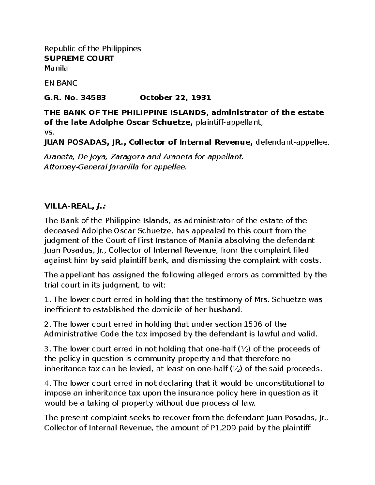 BPI vs. Posadas: Inheritance Tax Case Analysis (G.R. No. 34583) - Studocu