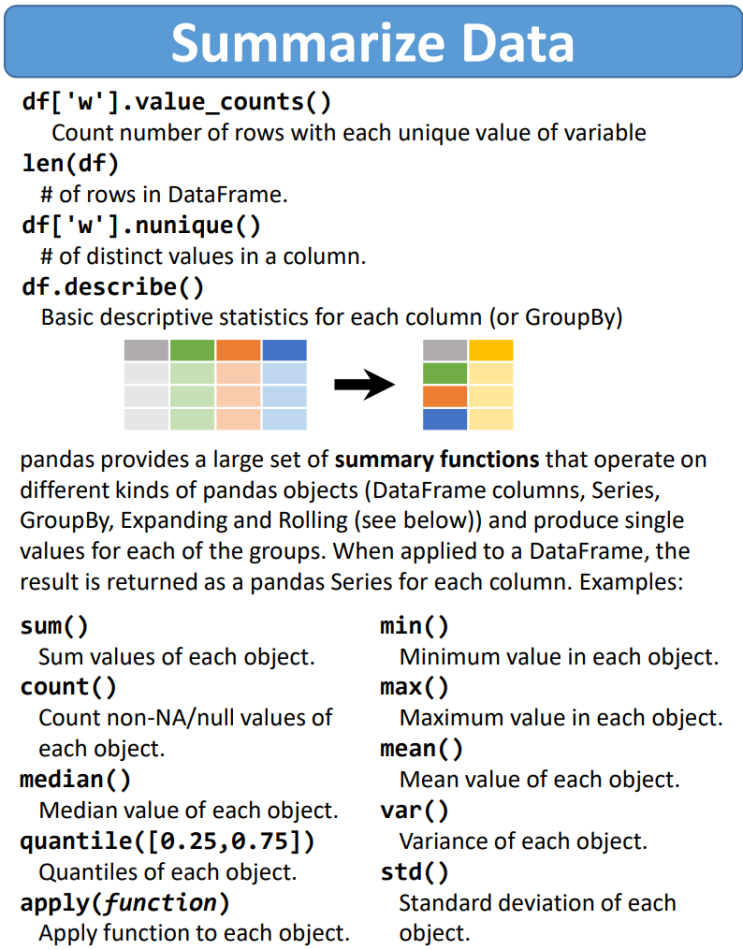 pandas Cheat Sheet 4. Summarize Data : 네이버 블로그