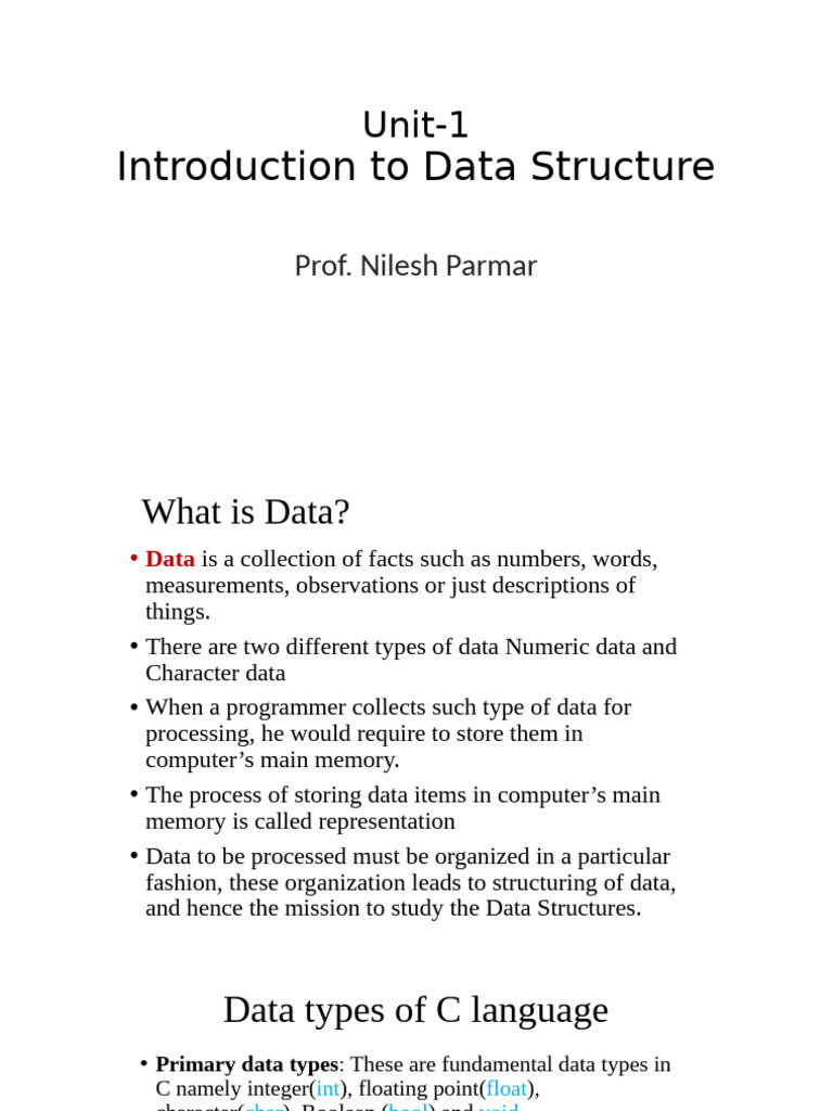 DATA Structure ALL UNIT - Introduction to Data Structure Introduction ...