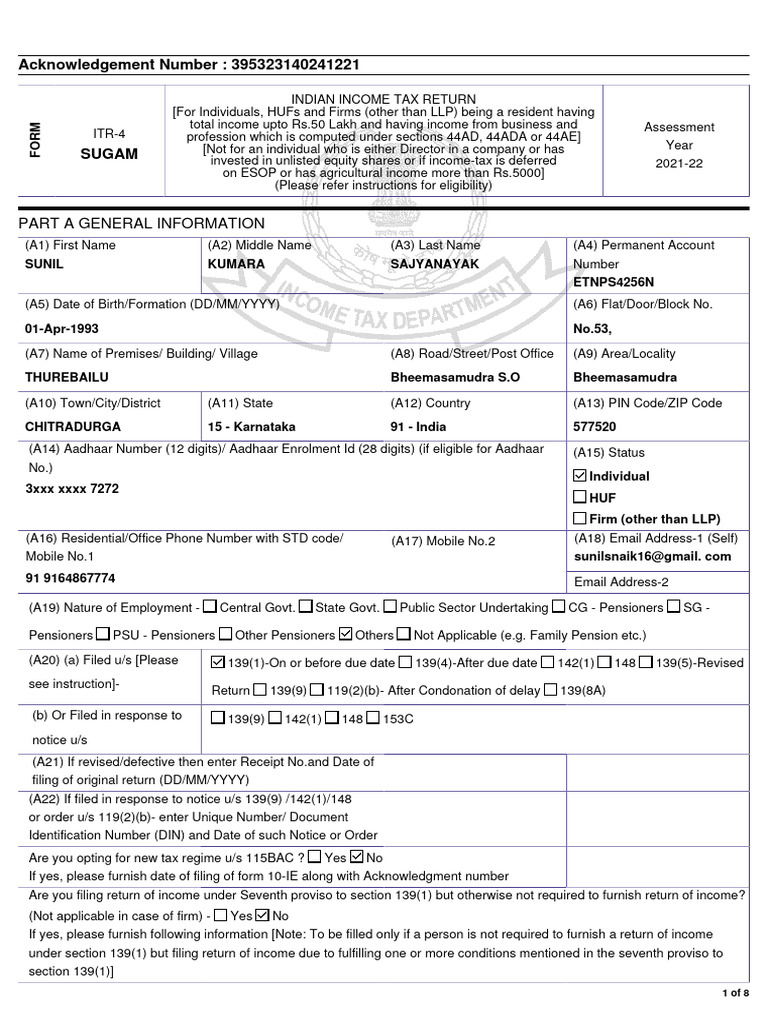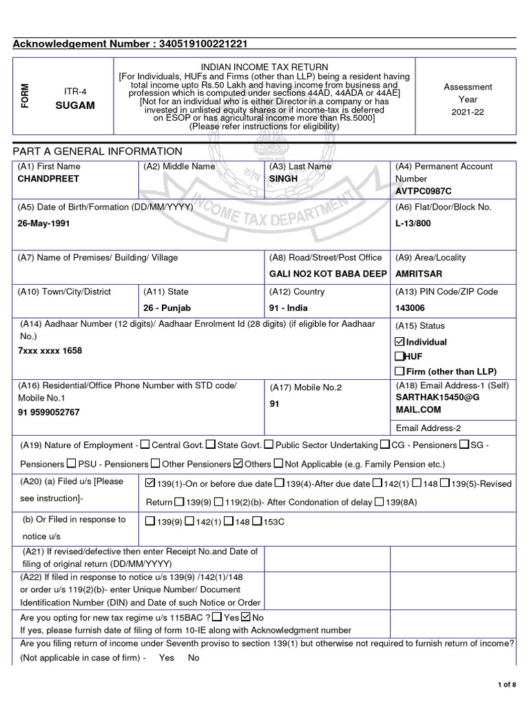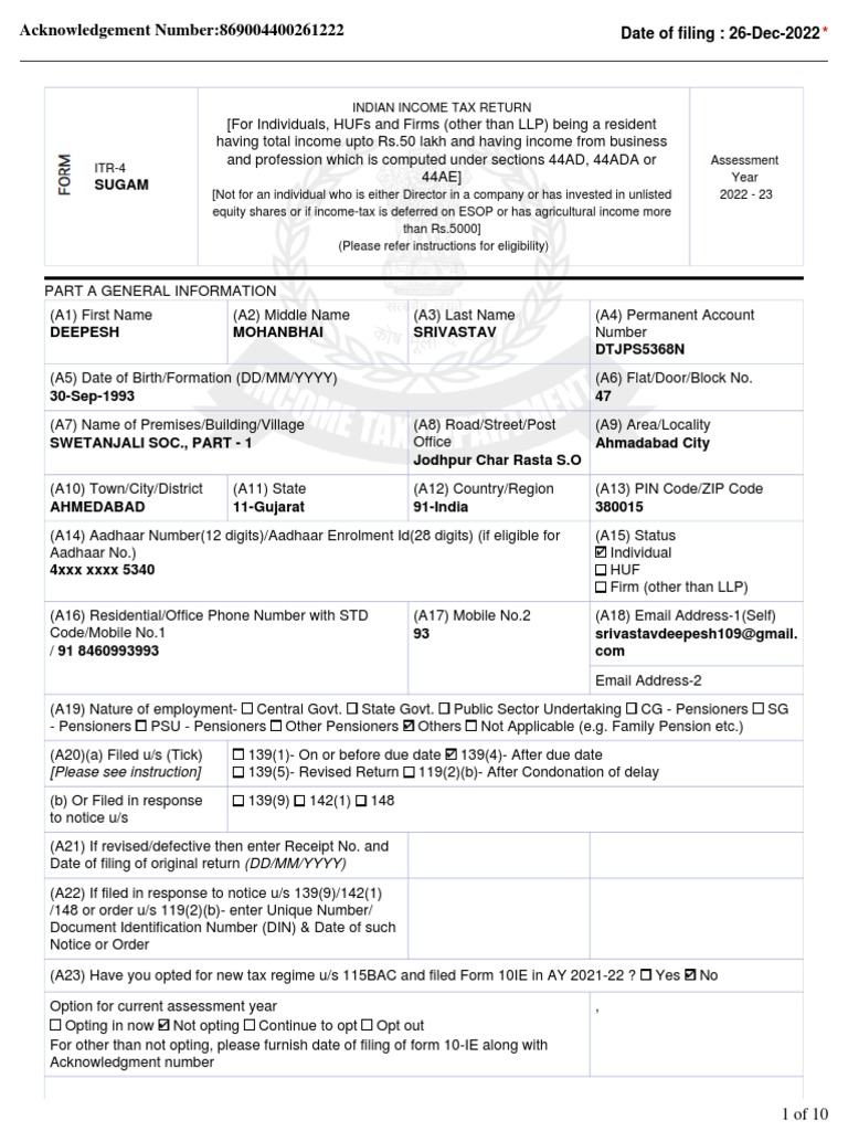 ITR-4 Filing for AY 2022-23 | PDF | Tax Deduction | Loans