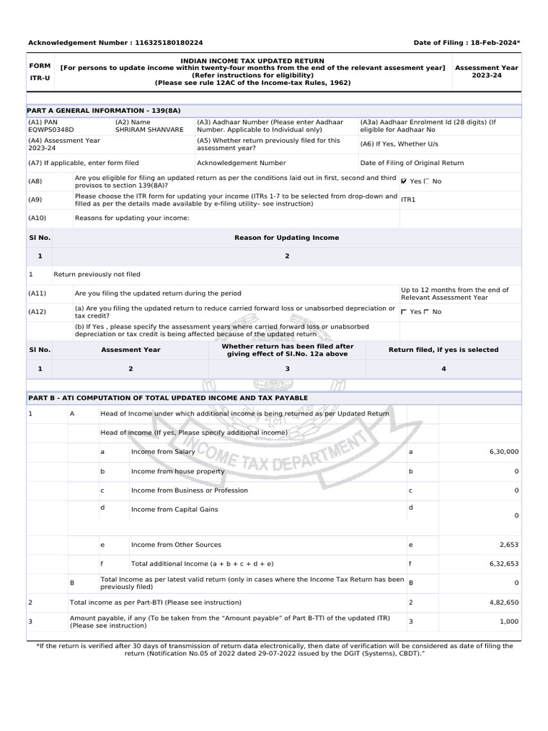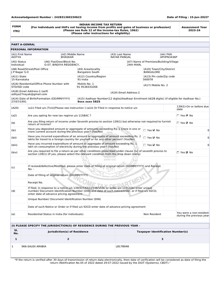 ITR Return Acknowledgment 2023-2024 | PDF | Taxes | Income Tax