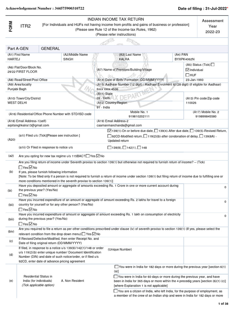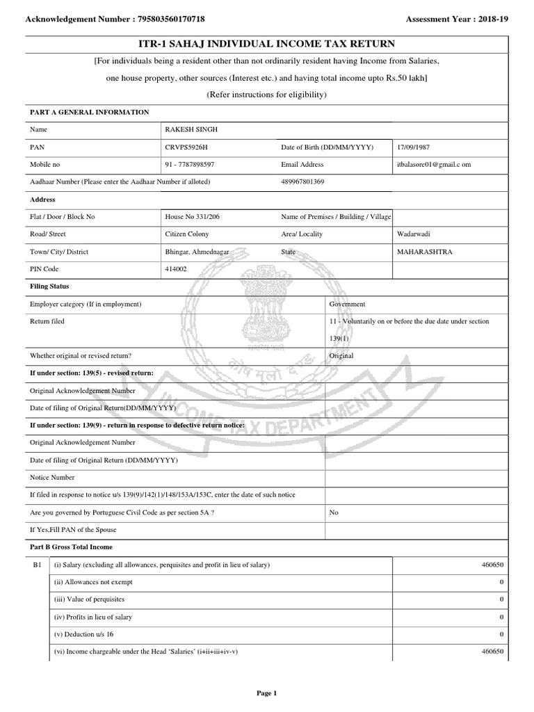 Sample ITR-1 Filled Form Guide | PDF | Microsoft Excel | Xml