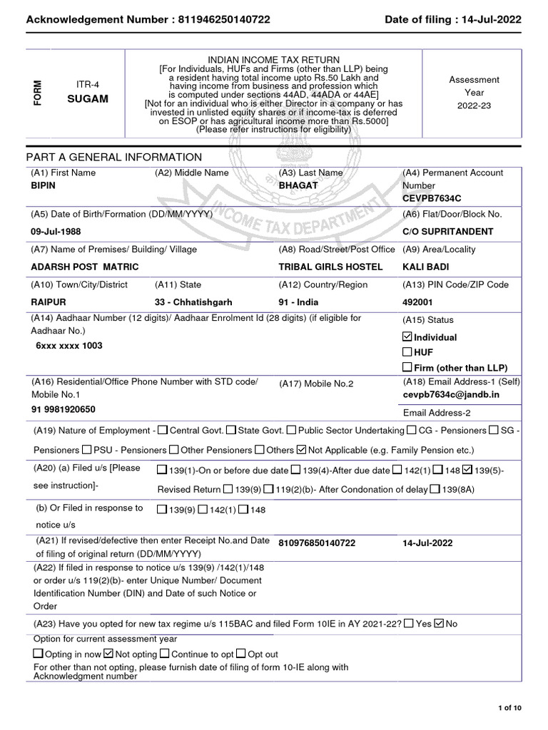 NEW INCOME TAX FORM 2023-24 Sakuntala Mohanta | PDF | Income | Tax ...