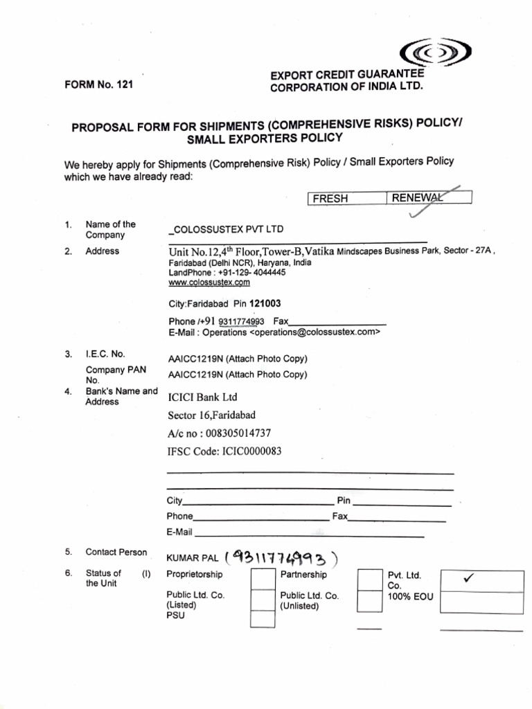 Policy Renew Form No 121 | PDF | Insurance | Tax Refund