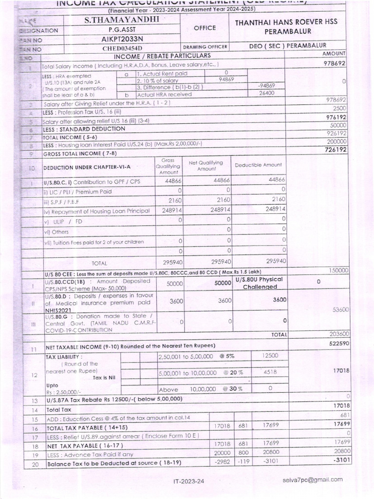 Proforma for Calculation of Income Tax for Tax Deduction | Income Tax ...