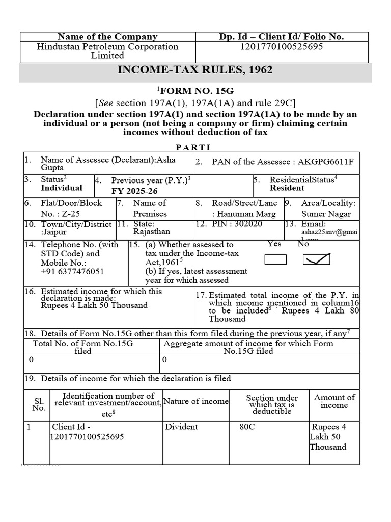 Annexure 1 - ForM 15G | PDF | Income Tax | Taxes