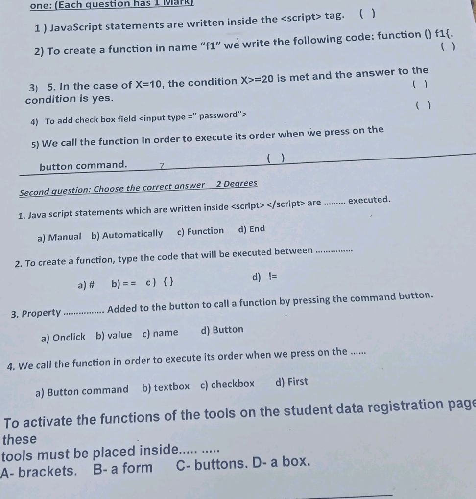 Based on this image's title: “1) JavaScript statements are written inside | StudyX”