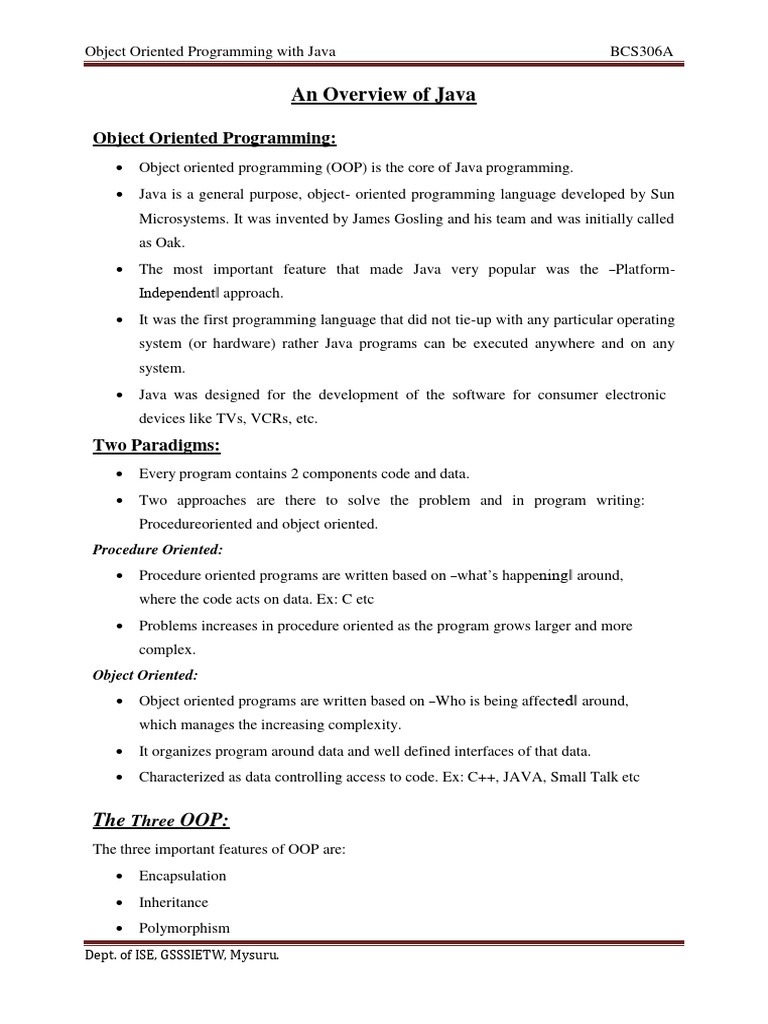 OOP with Java Notes - Module 1 Overview (BCS306A) - Studocu