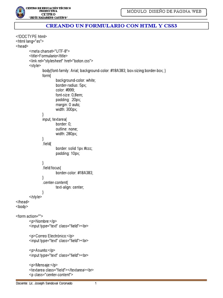 Crear Formularios con HTML y CSS3 | PDF | Formatos de archivo de ...