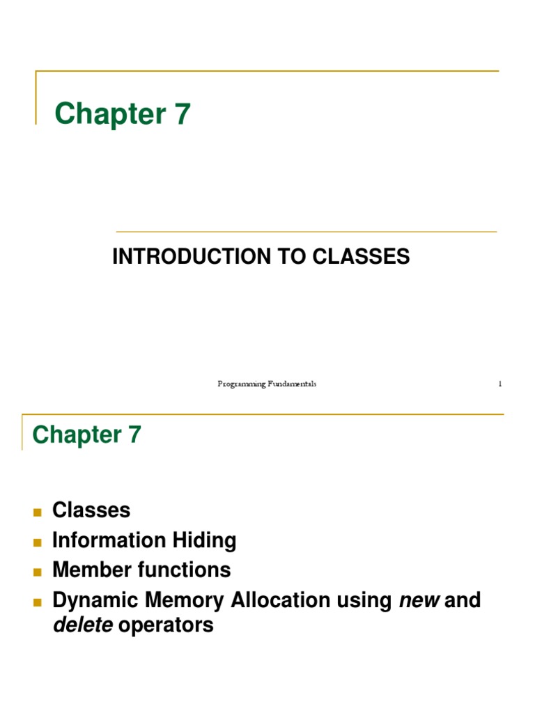 Introduction To Classes: Programming Fundamentals 1 | PDF | Class ...