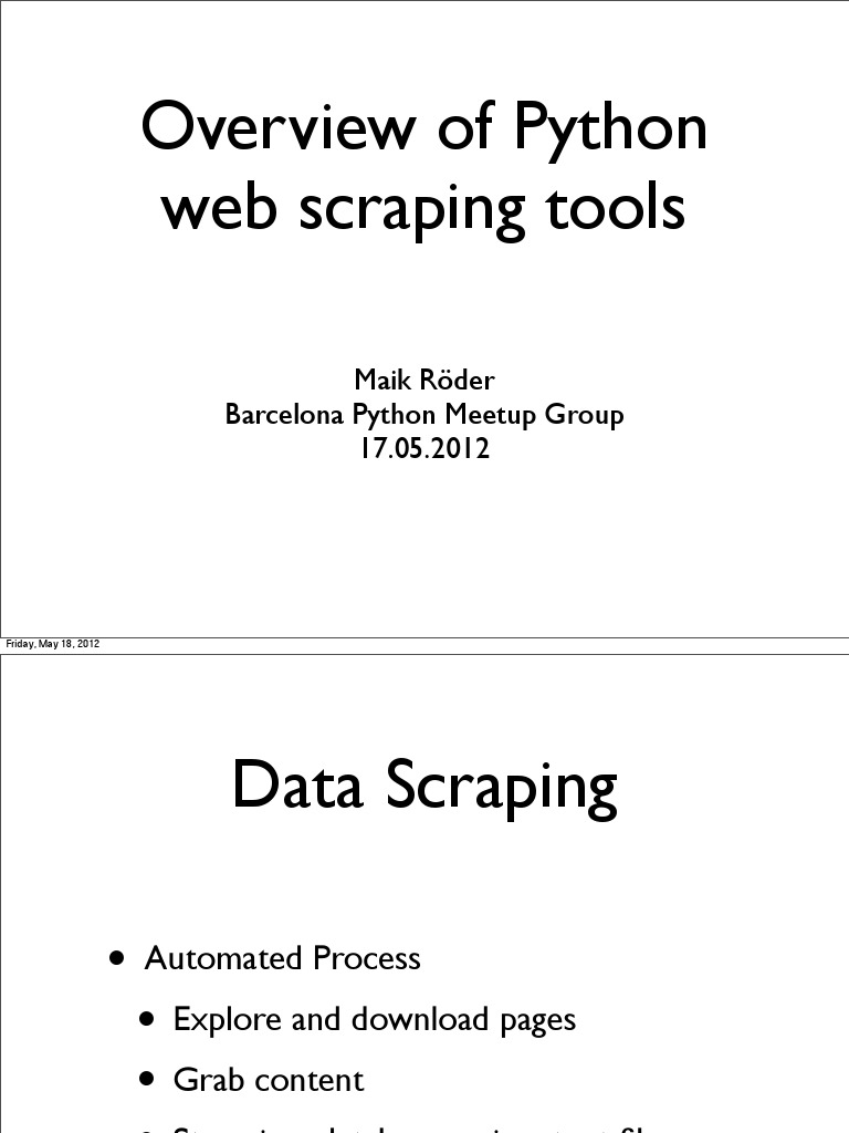 Overview of Python Web Scraping Tools: Maik Röder Barcelona Python ...