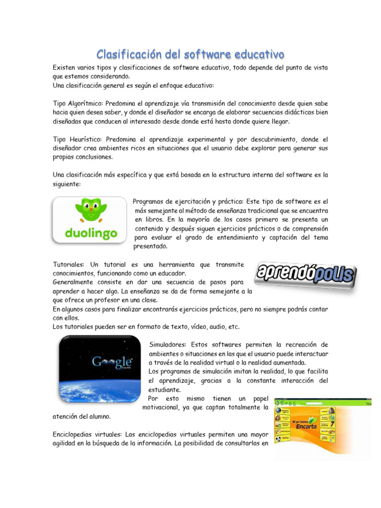 Tipos y Clasificación del Software Educativo | PDF | Enseñando ...