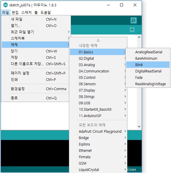 아두이노 예제 사용하기 : 네이버 블로그