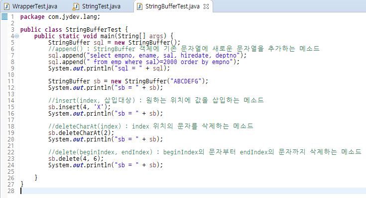 Java 강의 25. StringBuffer 클래스 - 문자열 묶고 추가 또는 삭제 등의 명령어 제공 - YouTube