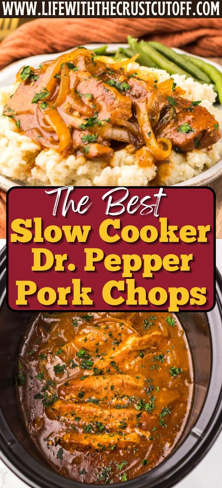 Based on this image's title: “Easy Dr. Pepper Slow Cooker Pork Chops Recipe”