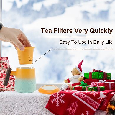 1Pc Tea Cup with Infuser, 13.5oz Ceramic Tea Infuser Mug with Wood Handle