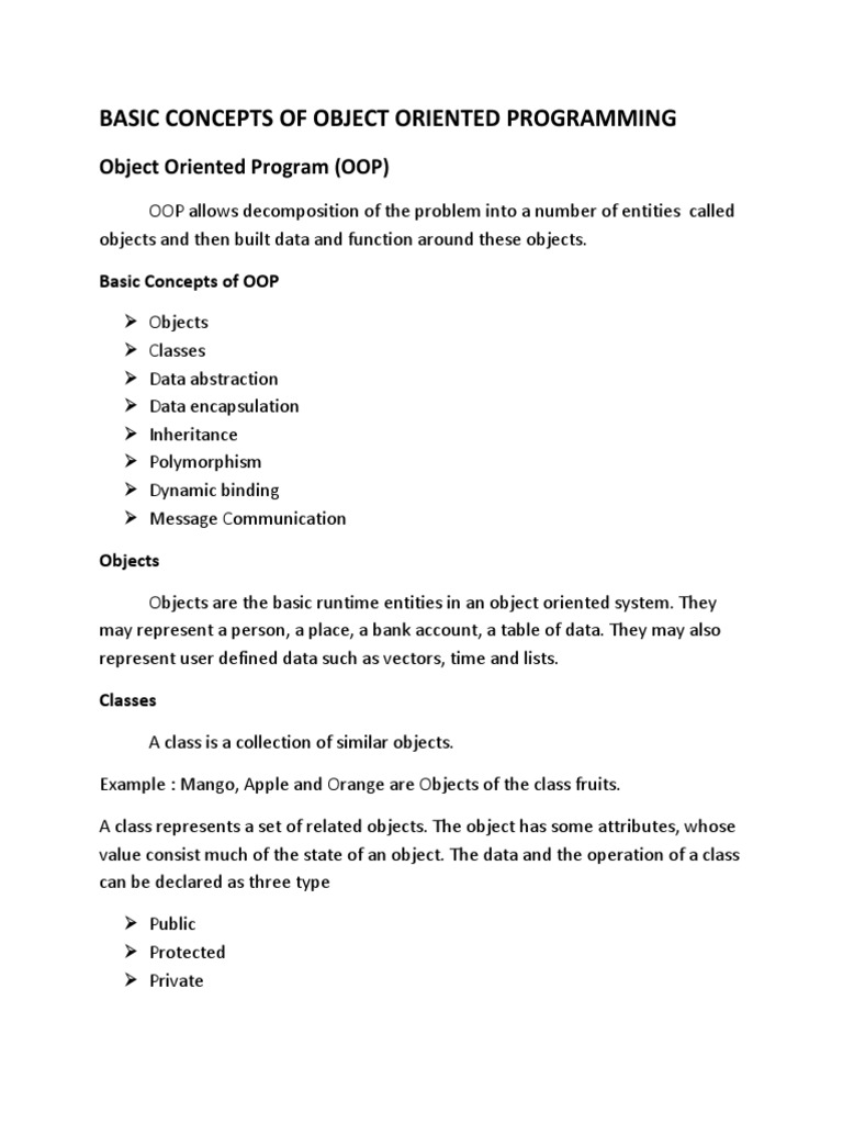 Basic Concepts of Object Oriented Programming | PDF | Object Oriented ...