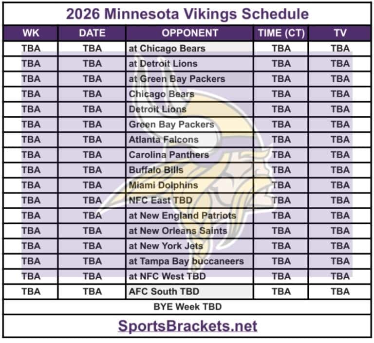 2026 Minnesota Vikings Schedule: Printable PDF, Opponents, and Strength ...
