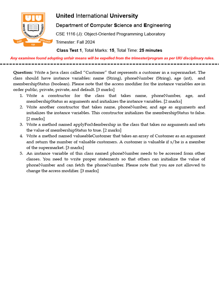 OOP Lab Test: Java Class Design | PDF